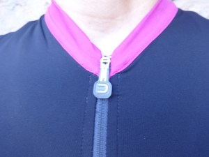 The grip around the bottom hem is very light and features the Dotout logo (only seen when you flip it). Unfortunately, the hem didn’t stay down for me and crept up and under the rear pockets every single time. However, this photo also shows you the nice touch added to the bottom of the zipper – an extra soft flap of material so the end of the zipper doesn’t get caught against your bibs or dig into your skin when in the riding position.